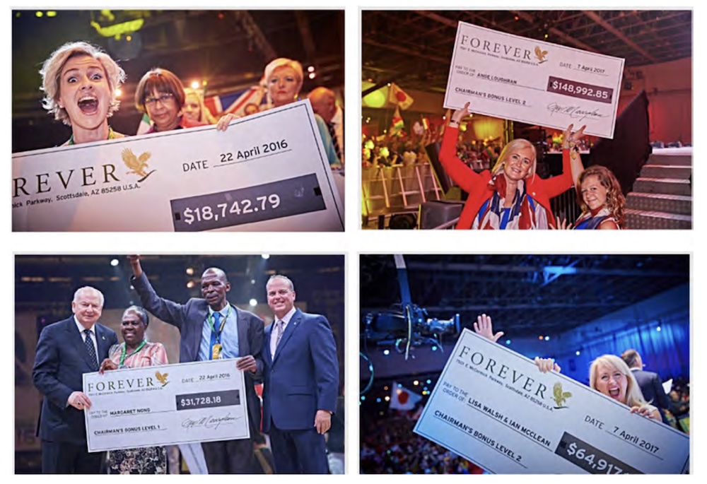 They also note that, for many years, Forever Living has shared numerous images of FBOs holding giant checks, for FBOs to use in marketing the MLM opportunity: