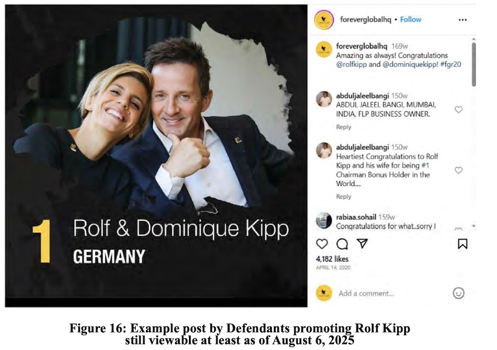 They also critique the company’s in-person gatherings, at which “Defendants repeat their deceptive earnings claims, and present FBO testimonials in which speakers discuss how Forever Living improved their lives, for instance, enabling them to rely solely on their FBO income.”
